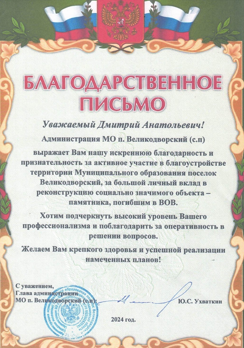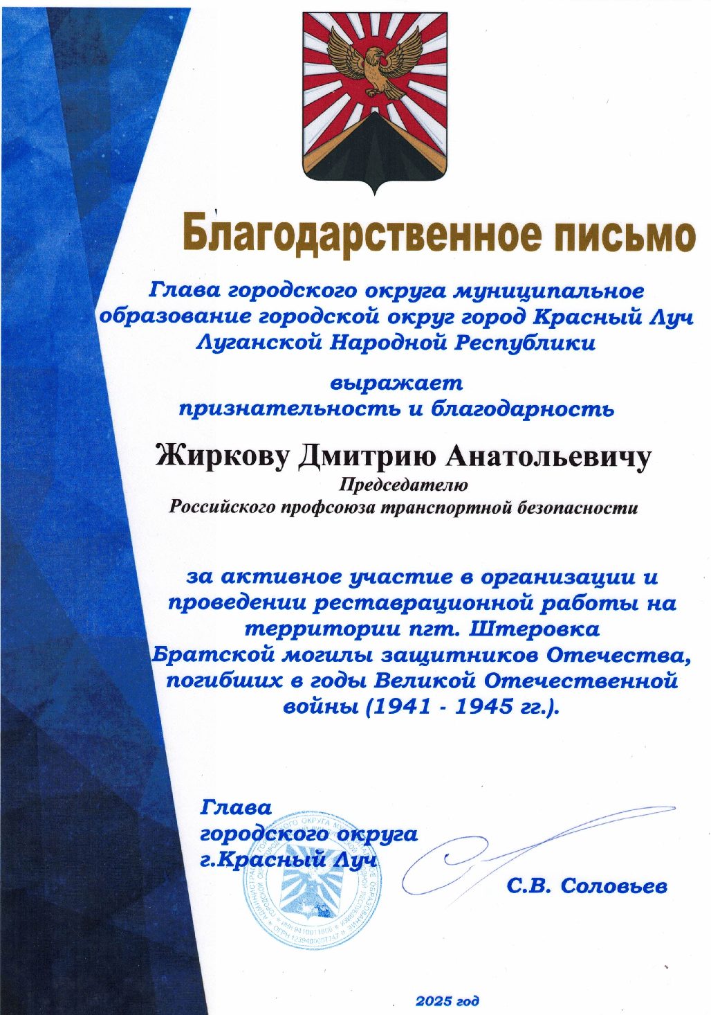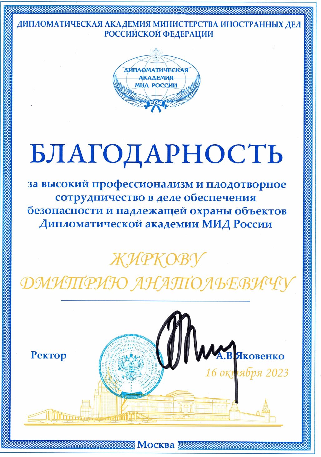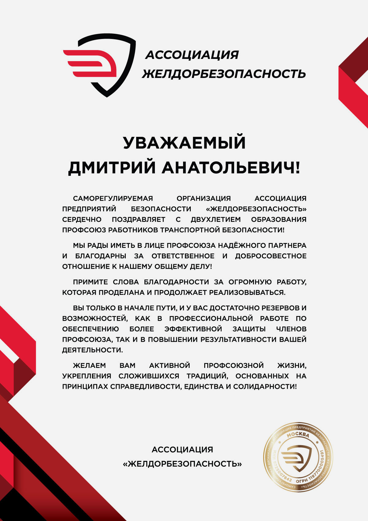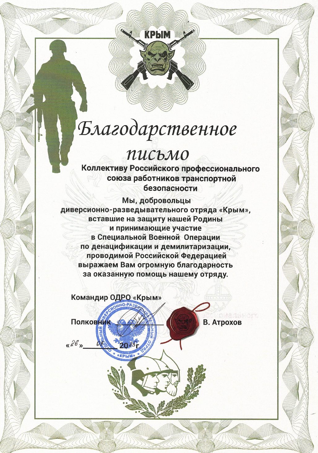 Благодарности Профсоюзу